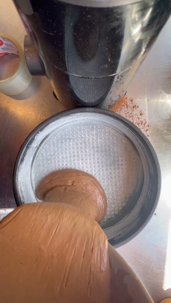 Seguimos tamizando la harina, la maicena y el cacao y mesclamos hasta obtener una masa lisa y homogénea.