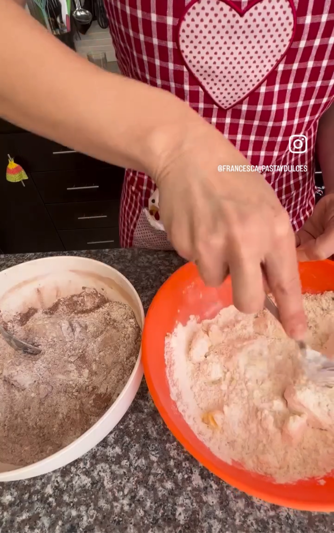 Para hacer esta receta necesitamos de dos recipientes para hacer dos masas de colores diferentes: una blanca y otra negra.