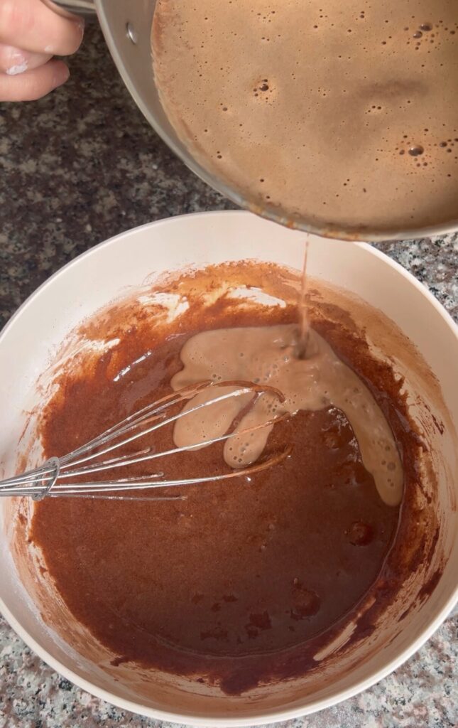 Preparamos la crema. Ponemos a calentar la leche con el chocolate hasta que este último esté derretido.