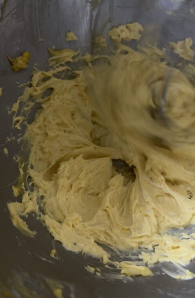 Empezamos derritiendo el chocolate negro en el microondas o en baño maría y dejamos enfriar. Montamos la mantequilla con el azúcar impalpable y la vainilla. Cuando empezará a tener un color claro, unimos la pizca de sal y los huevos semi batidos un poco a la vez. Montamos bien, por lo menos unos 8-10 minutos hasta que la mantequilla y los huevos estén bien montados y espumosos.