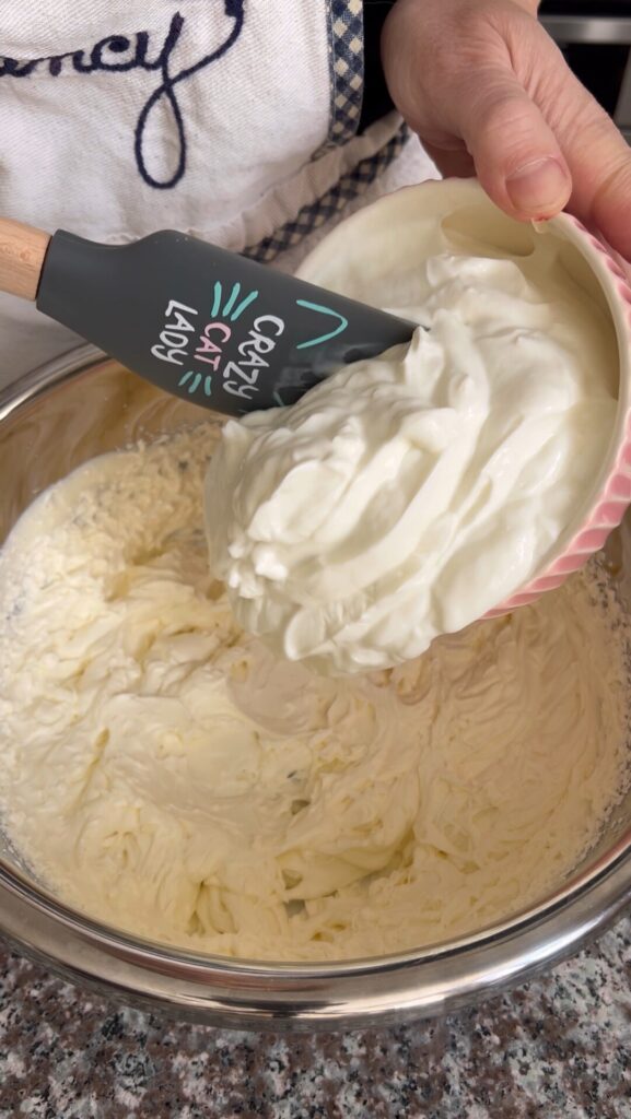 Le unimos el yogurt y mezclamos con una espátula delicadamente.