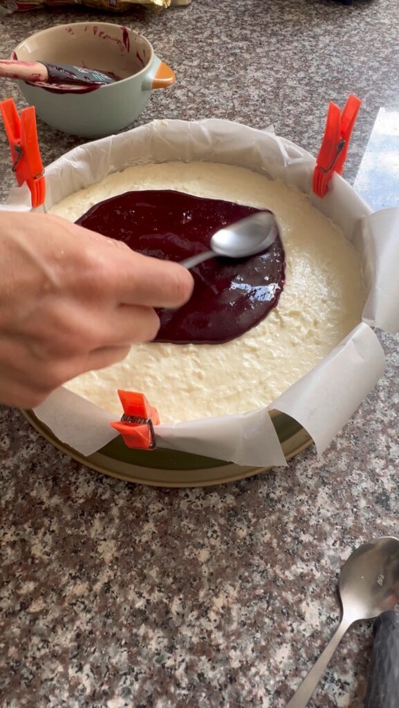 Vertamos la crema encima del pastel y dejamos solidificar en la refrigeradora.